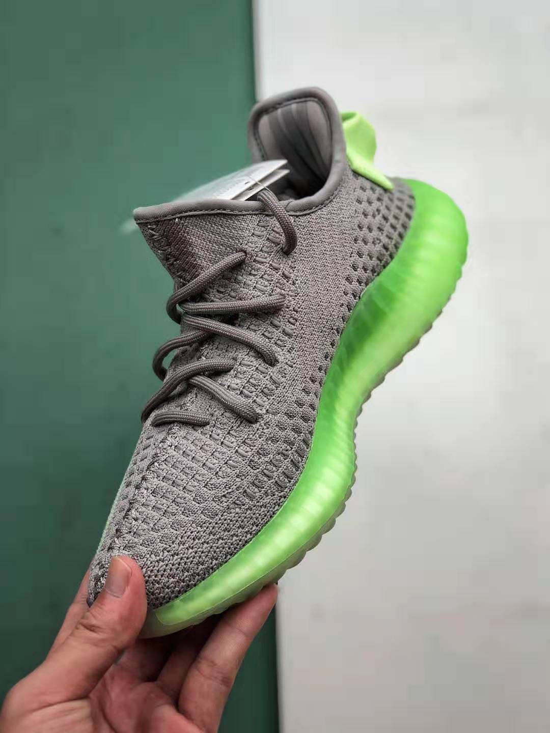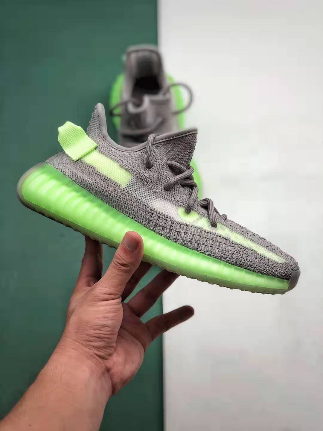Features: The Adidas Yeezy 350 Boost V2 Grey Glow Volt Green EG5560 boasts several features that set it apart from the crowd. The Primeknit upper not only offers a lightweight and breathable fit but also molds to the shape of your foot for a personalized feel. The volt green stitching adds a pop of color and creates a visually striking contrast against the grey base. Additionally, the Boost midsole provides exceptional energy return, ensuring every step feels comfortable and springy. With a durable rubber outsole, these sneakers offer excellent traction on various surfaces.
